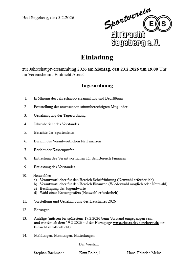 JHV - Eintracht Segeberg e.V.